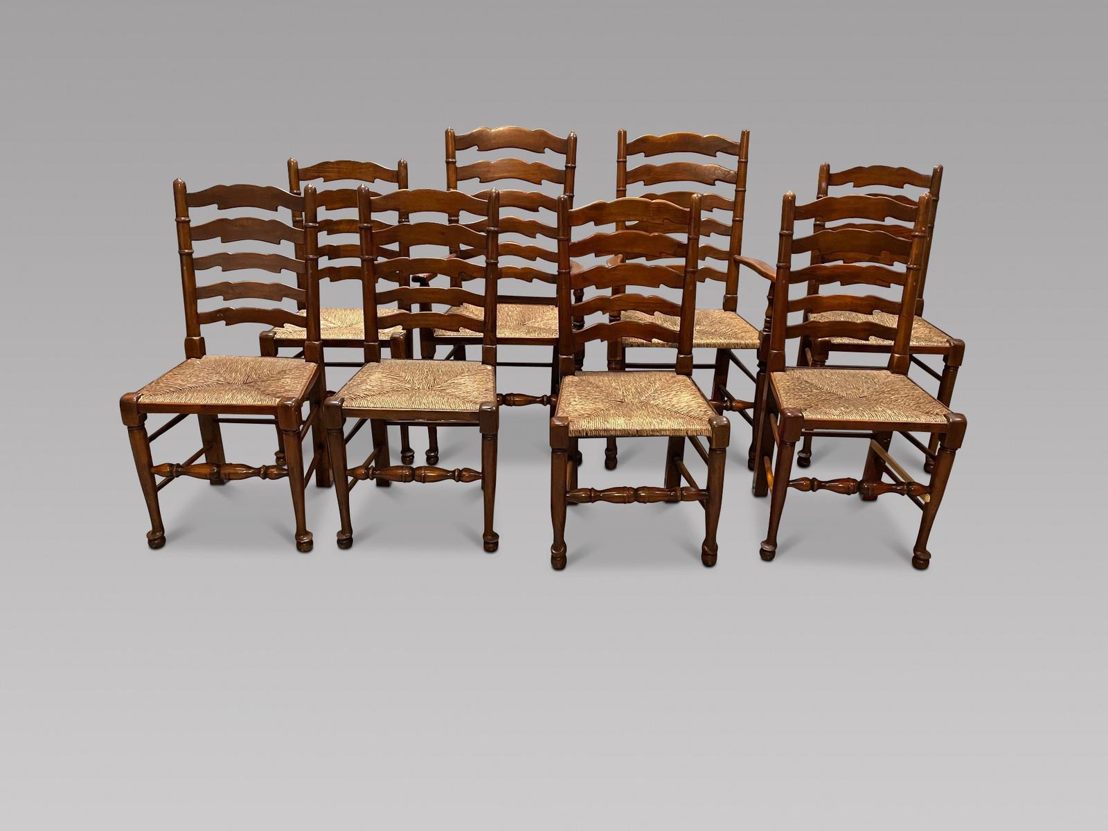 Set of Eight Ladderback Chairs with Two Carvers