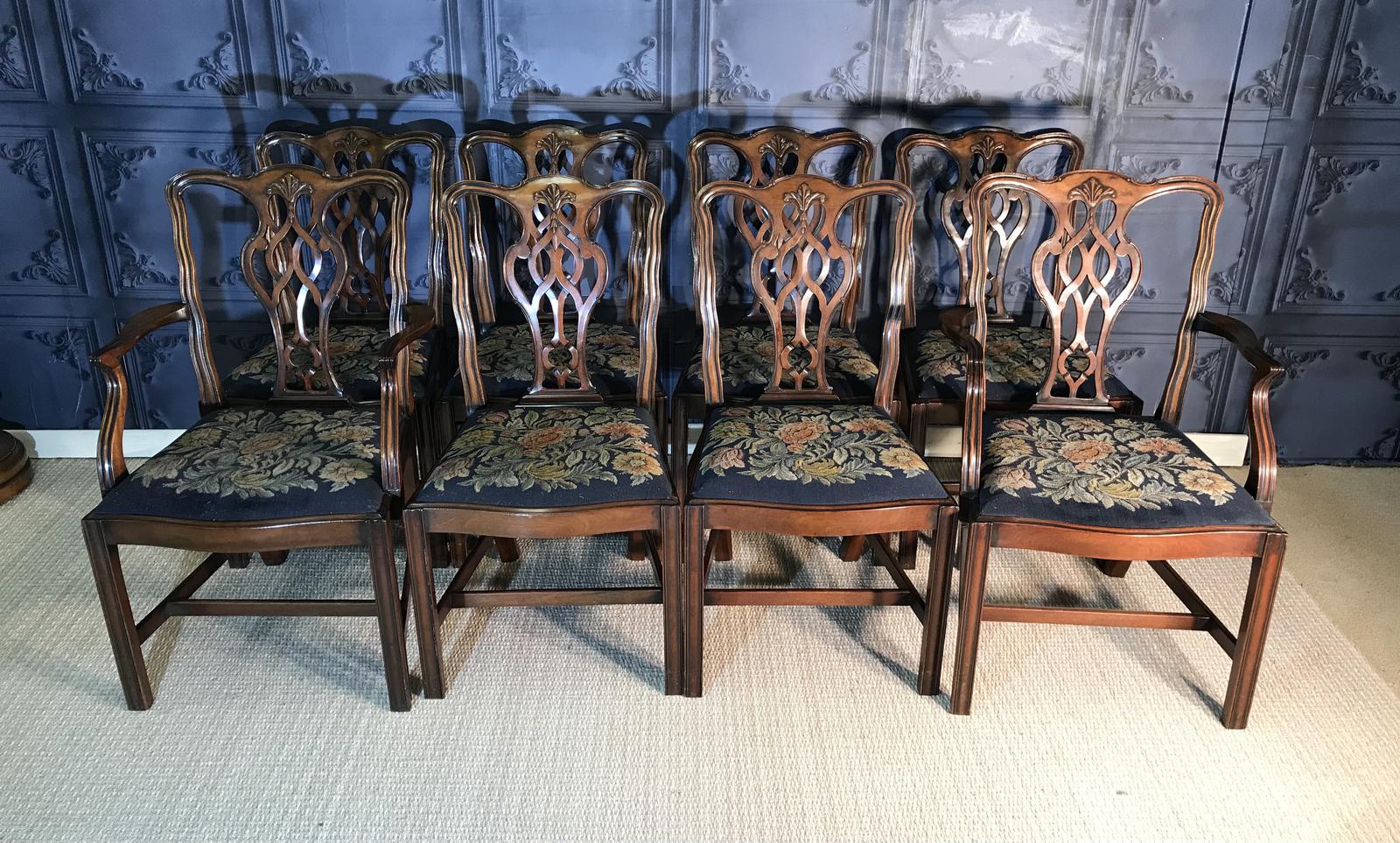 Set of Eight Mahogany Chippendale Style Dining Chairs