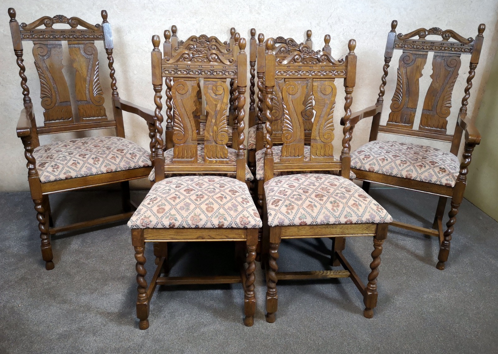 Set of Eight Oak Barley Twist Dining Chairs