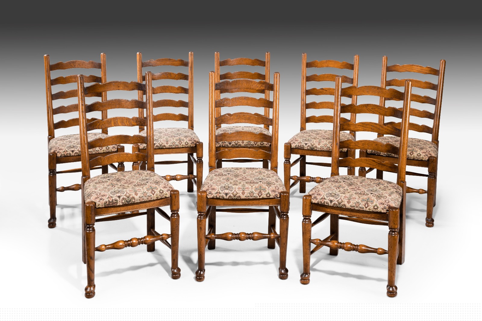 Set of Eight Oak Ladder Back Single Chairs c.1900