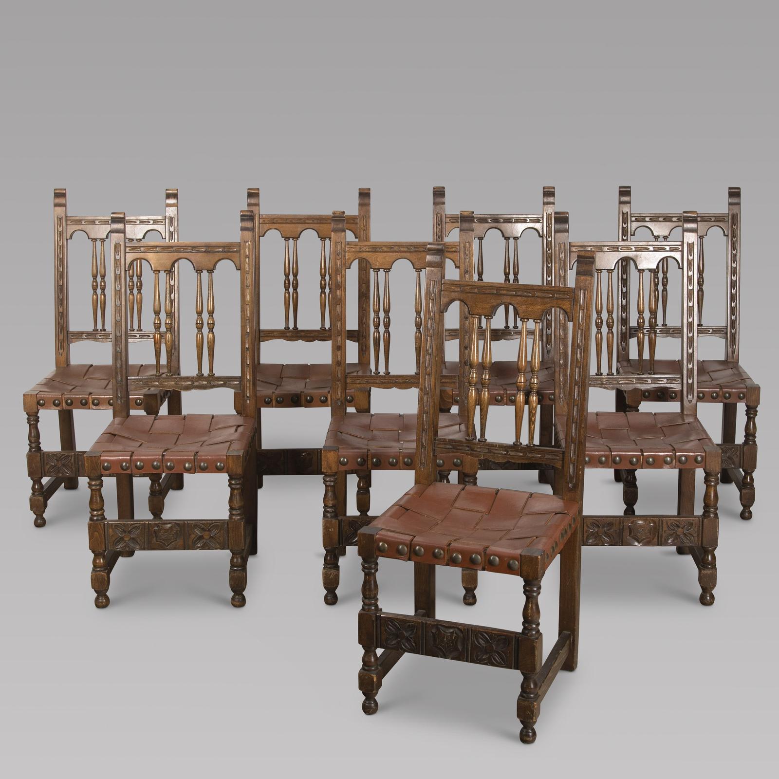 Set of Eight Oak & Leather Seated Dining Chairs (1 of 4)