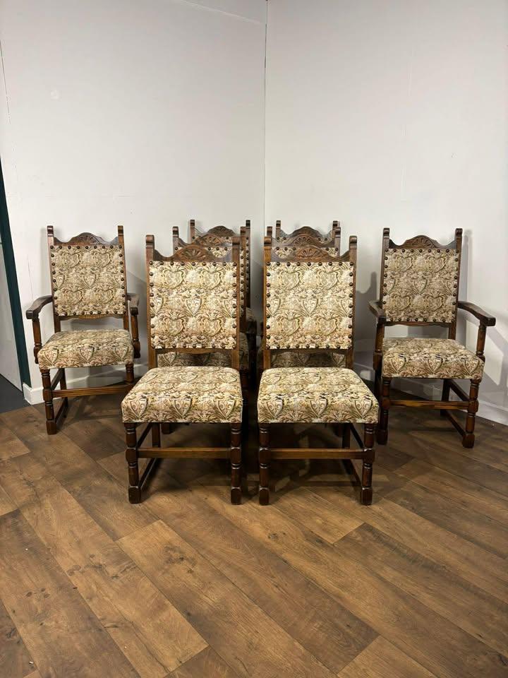 Set of Eight Oak Priory Style Dining Chairs
