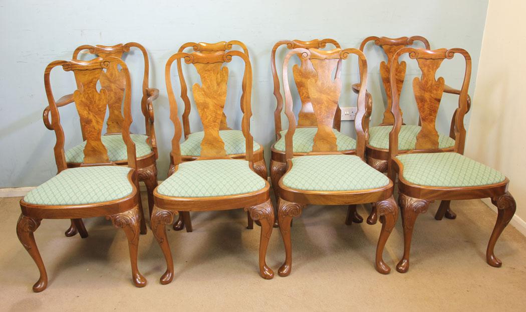 Set of Eight Queen Anne Style Walnut Dining Chairs