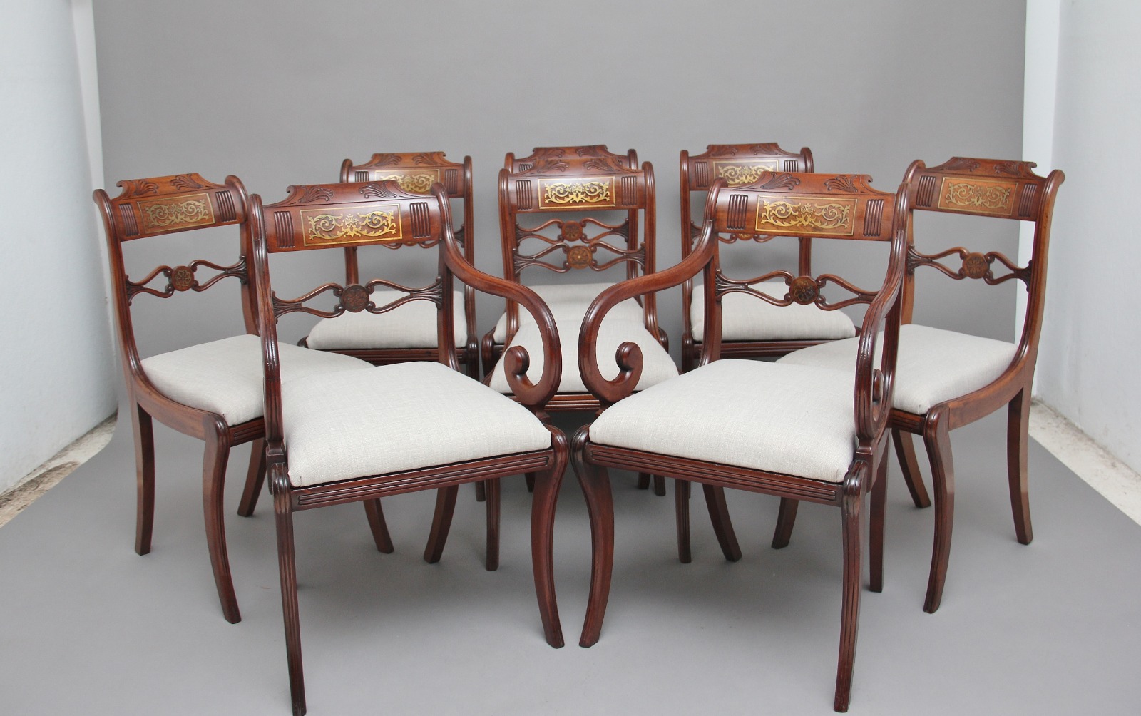 Set of Eight Regency Mahogany & Brass Inlaid Dining Chairs