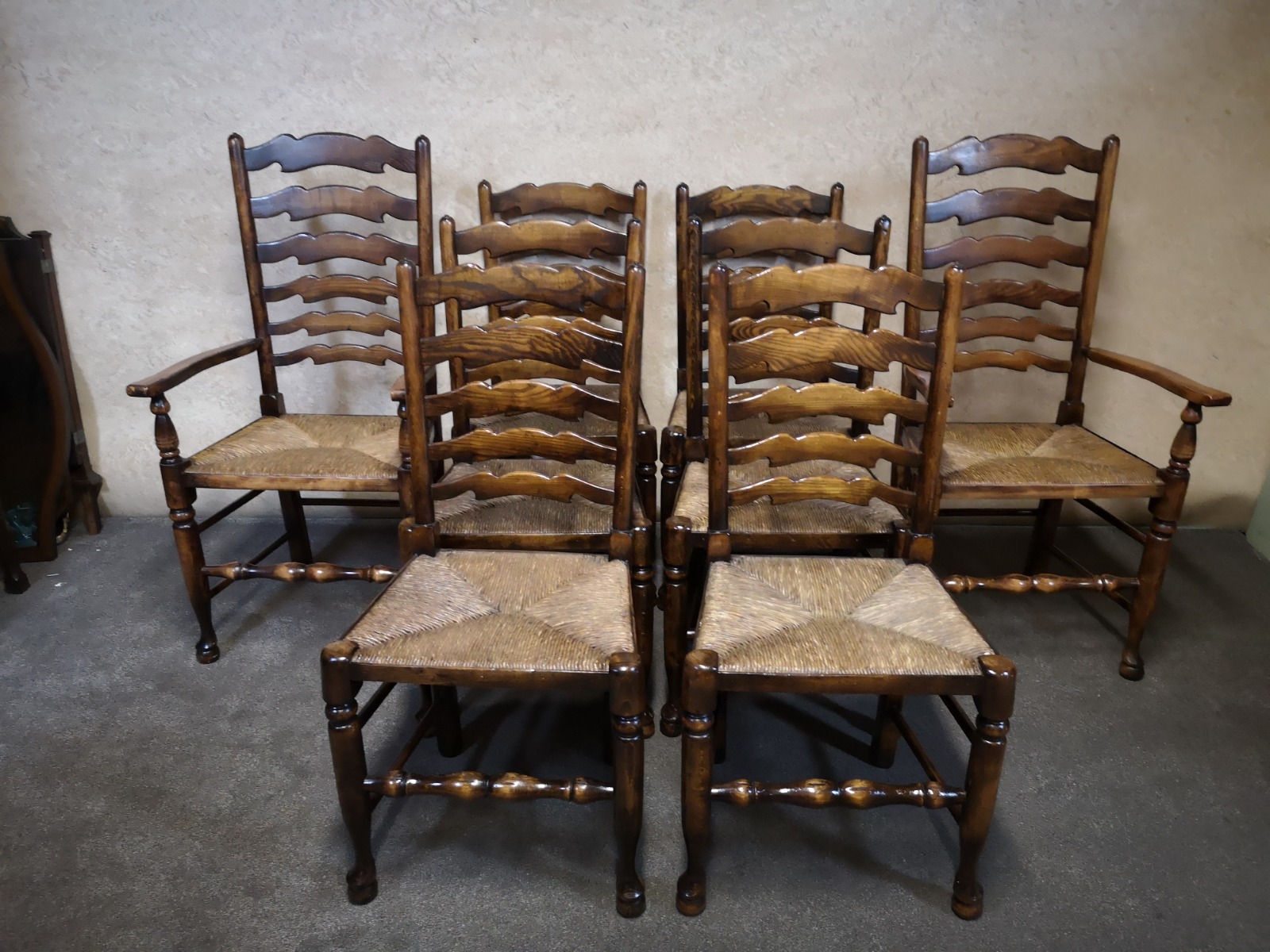 Set of Eight Titchmarsh & Goodwin Oak Ladder Back Dining Chairs (1 of 1)