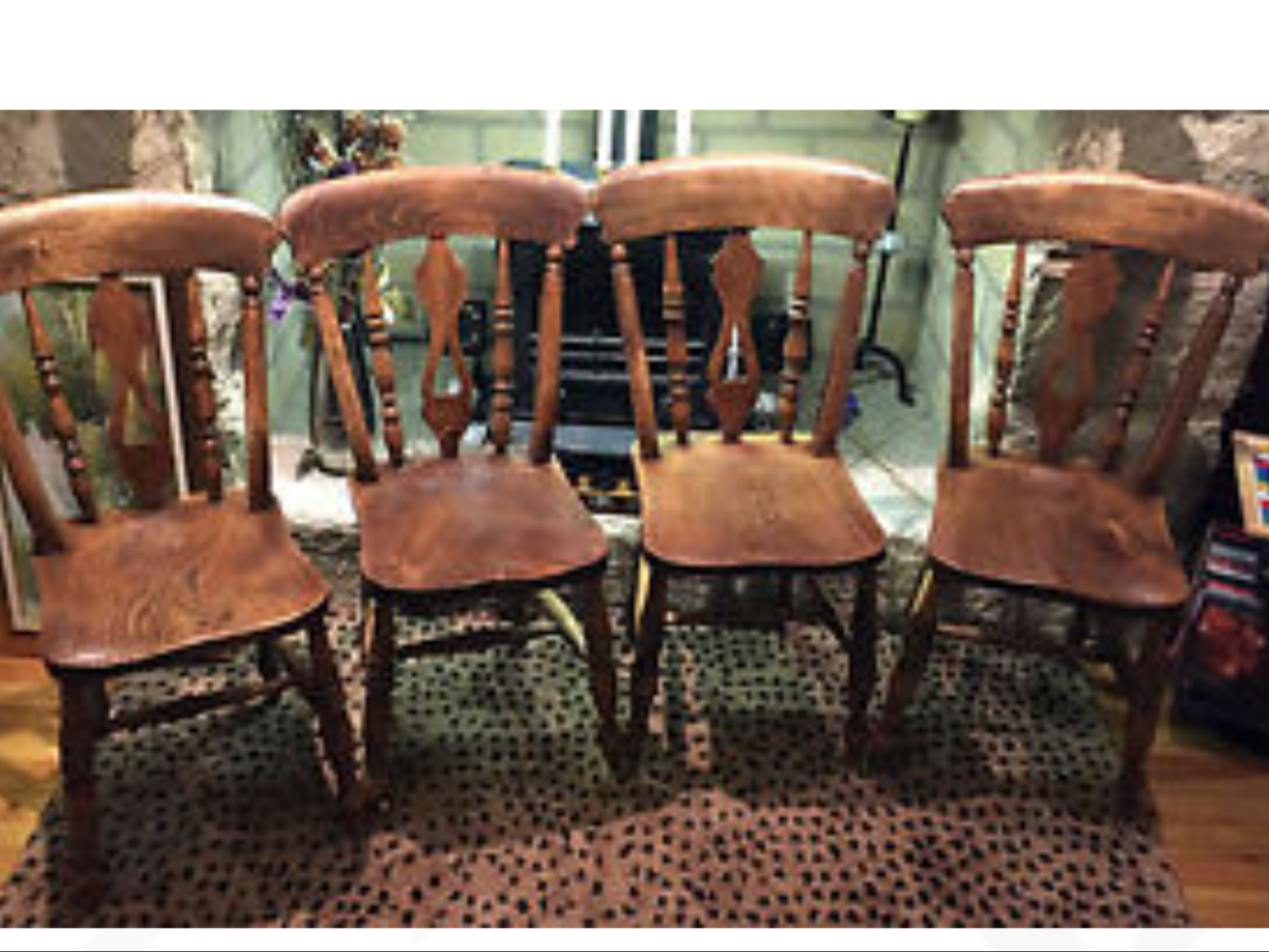 Set of Elm Fiddle Back Kitchen Chairs c.1890 (1 of 1)