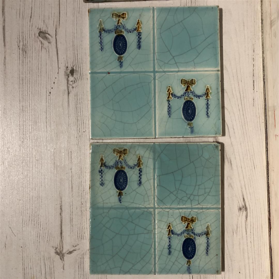 Set of Five Antique Fireplace Tiles in Embossed Pale Blue 0034 (1 of 6)