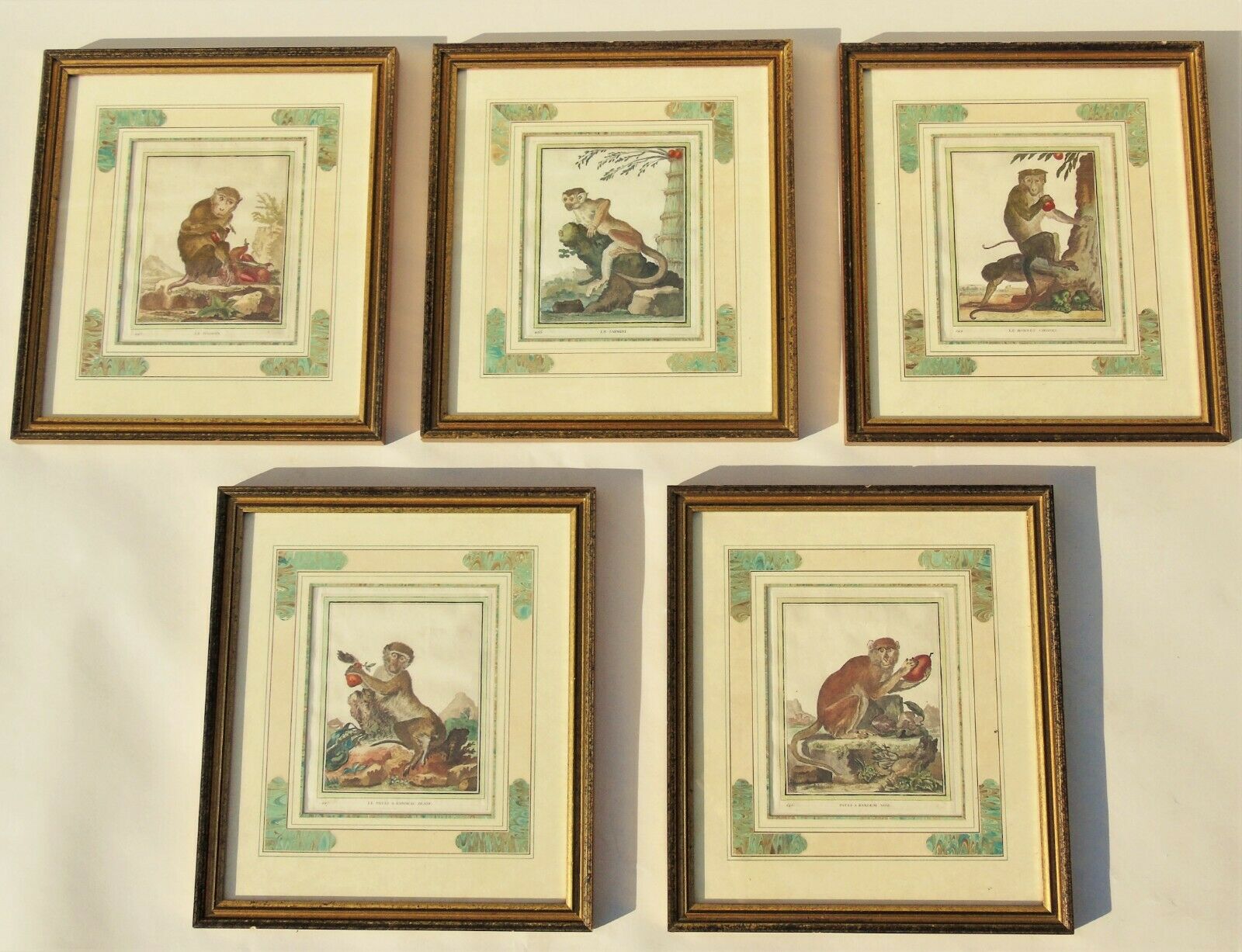 Set of Five French Hand Coloured Engravings of Monkeys (1 of 12)