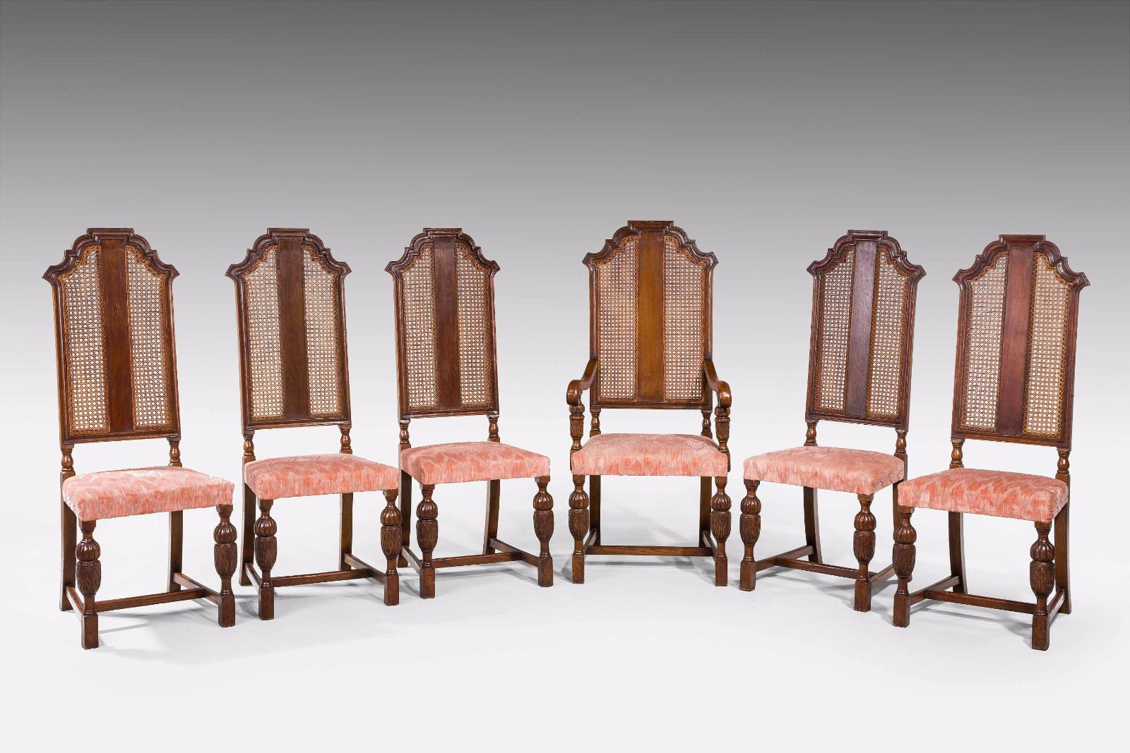 Set of Five Side & One Armchair Oak and Mahogany High Back Chairs C.1900