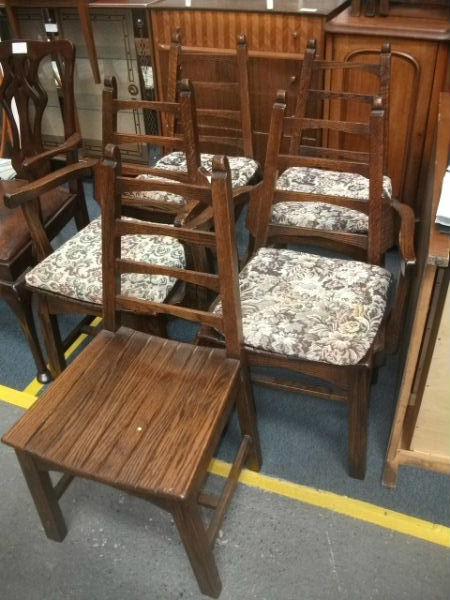 Set of Five Unusual Oak Country Style Ladder Back Chairs