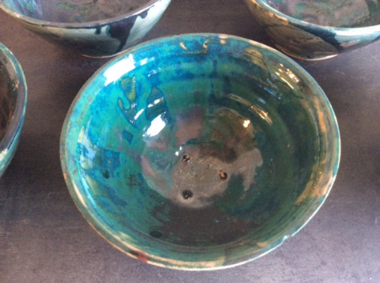 Set of Five Vintage North African, Pottery Sahal Made Slip Glaze Bowls 18cm Diameter Pine Green