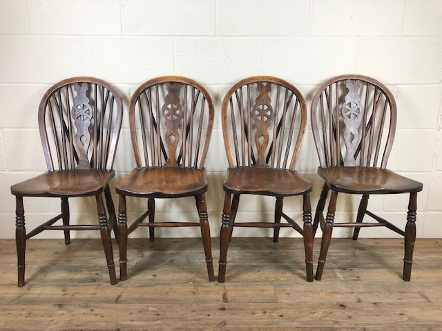 Set of Four 19th Century Ash & Elm Wheelback Chairs
