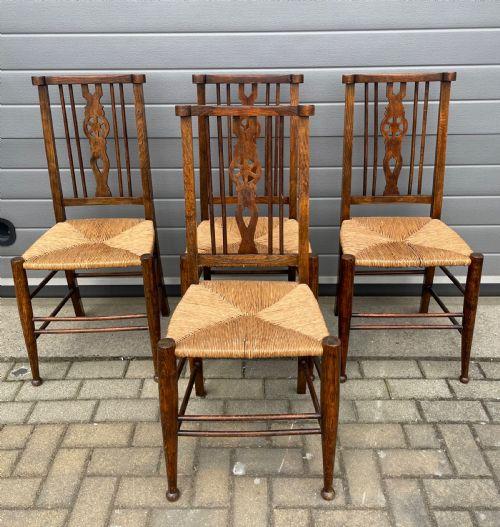 Set of Four 19th Century Beech Kitchen Dining Chairs