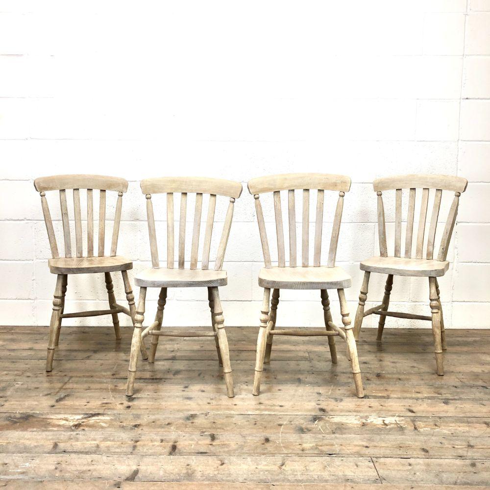 Set of Four Antique Beech & Elm Farmhouse Dining Chairs