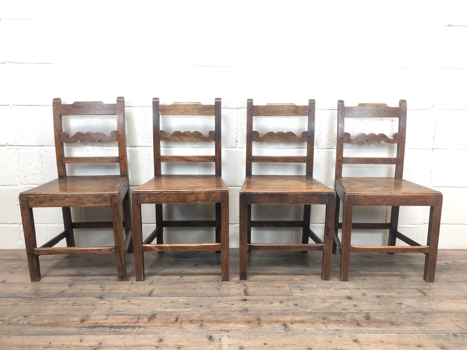 Set of Four Antique Country Oak Farmhouse Chairs
