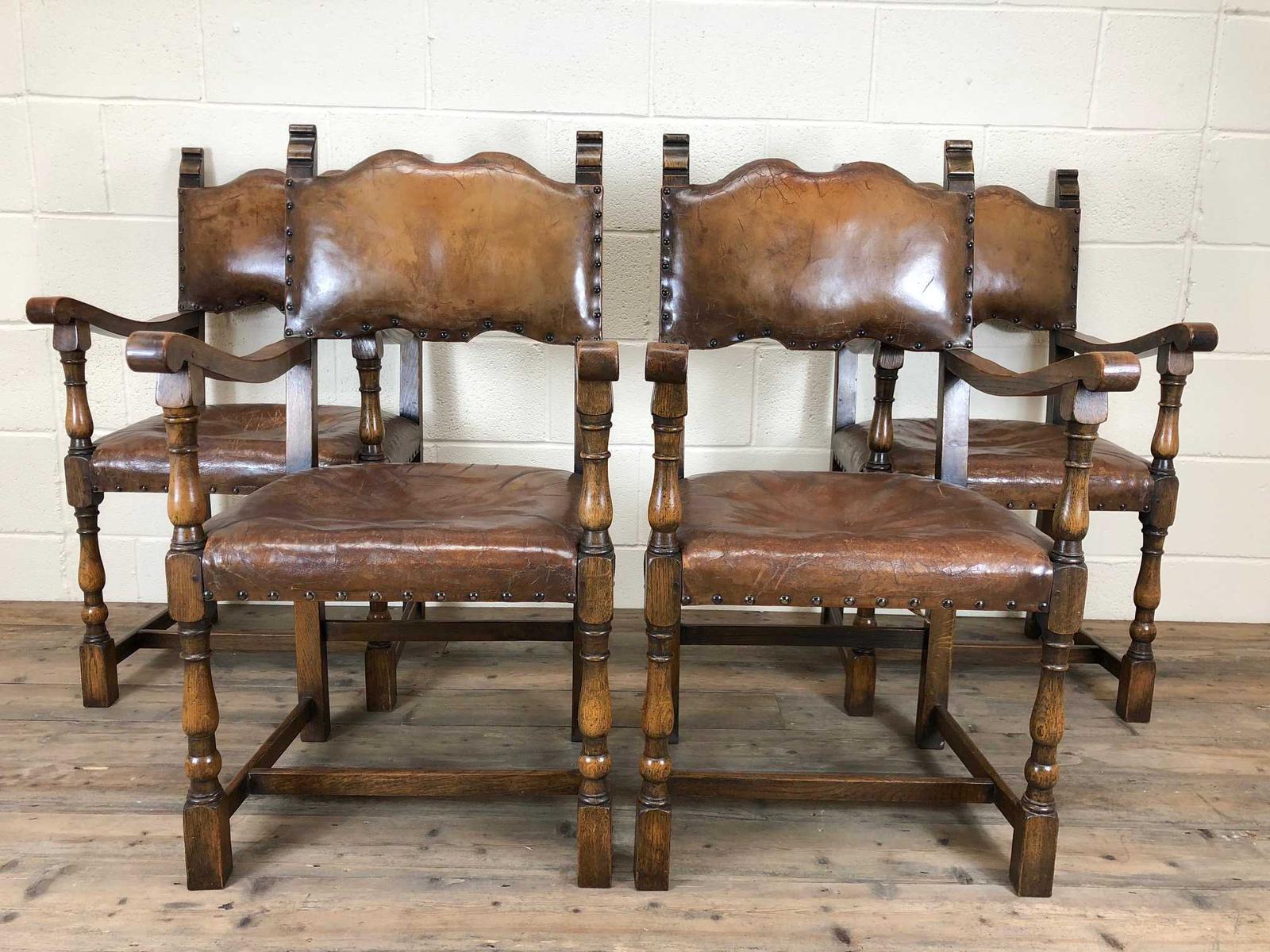 Set of Four Antique Leather Armchairs (1 of 16)
