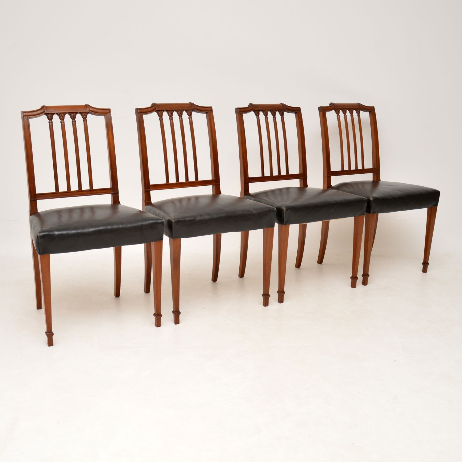 Set of Four Antique Mahogany & Leather Dining Chairs