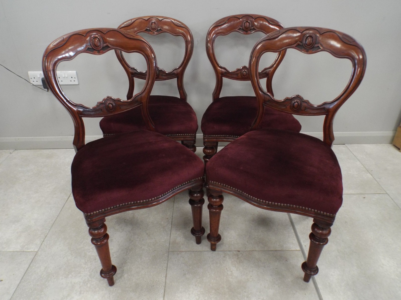 Set of Four Antique Victorian Walnut Balloon Back Dining Chairs