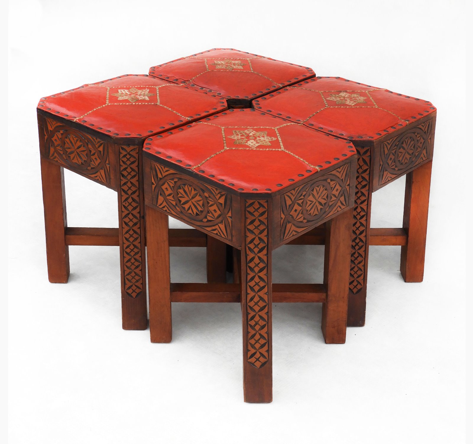 Set of Four Art Deco Moorish Footstool Tabourets c 1930
