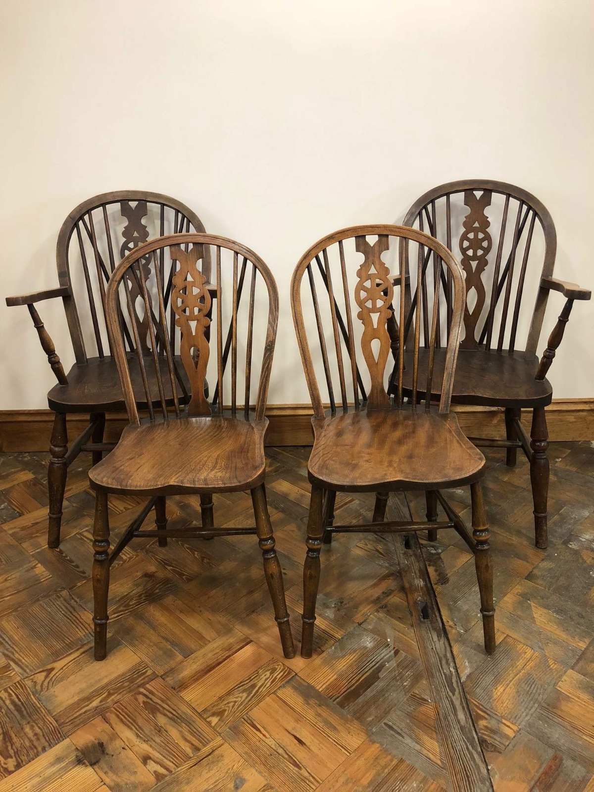 Set of Four Ash & Elm Wheelback Chairs Including Two Carver Armchairs (1 of 1)