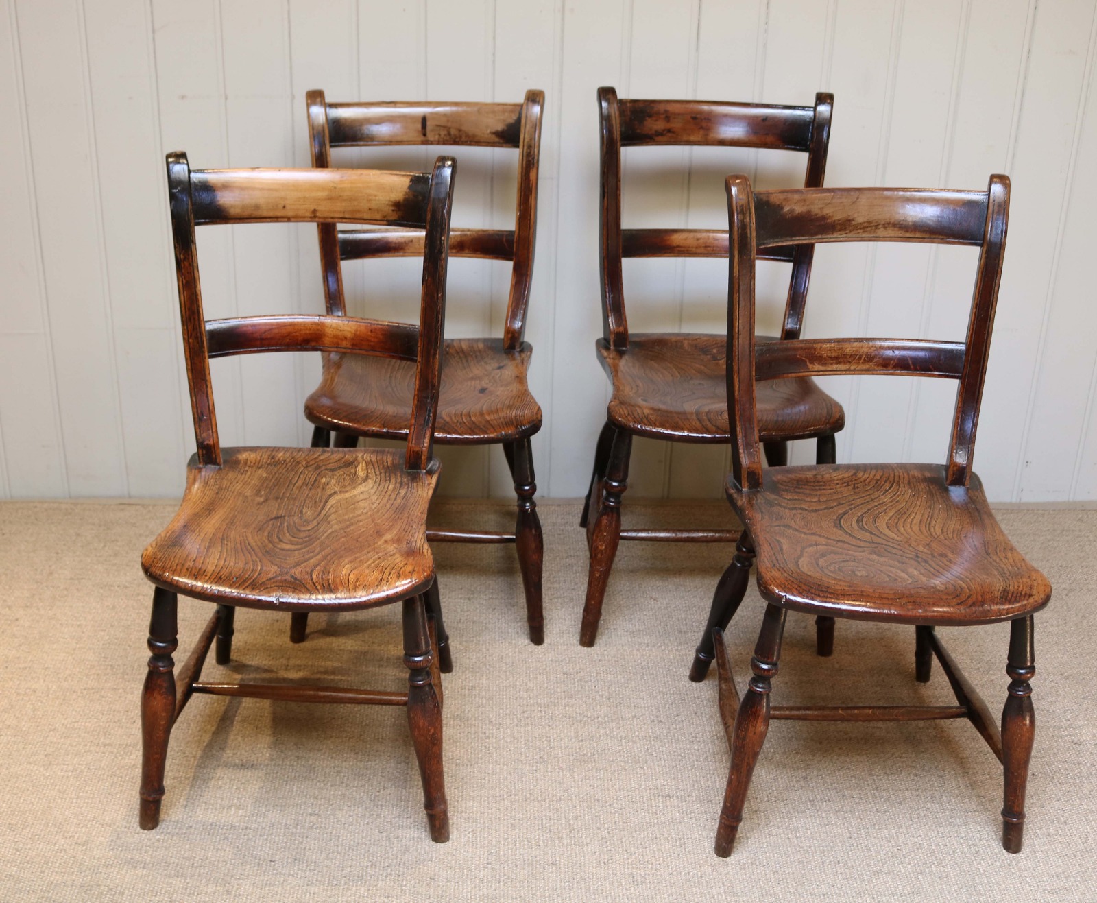 Set of Four Beech & Elm Dining Chairs c.1890