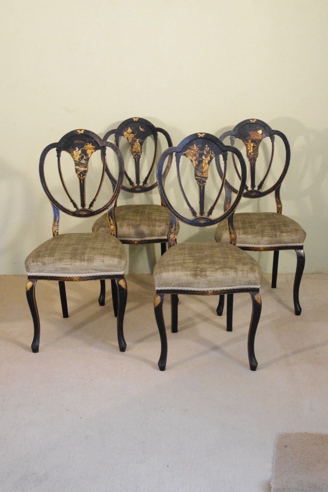 Set of Four Black Lacquer & Gilt Chinoiserie Chairs
