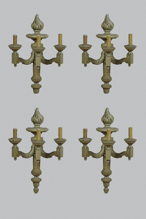 Set of Four Carved Wood French Painted Wall Sconces c.1920