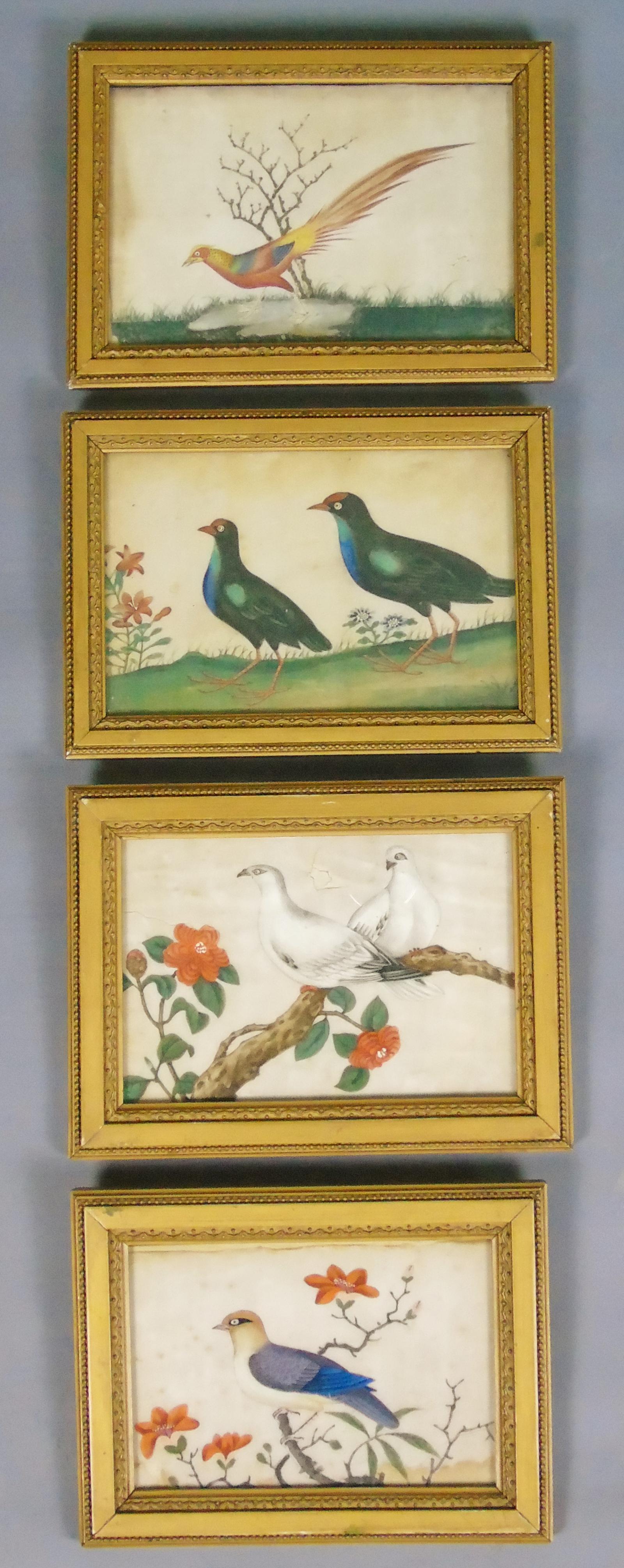 Set of Four Chinese Pith Paintings 19th Century Birds (1 of 10)