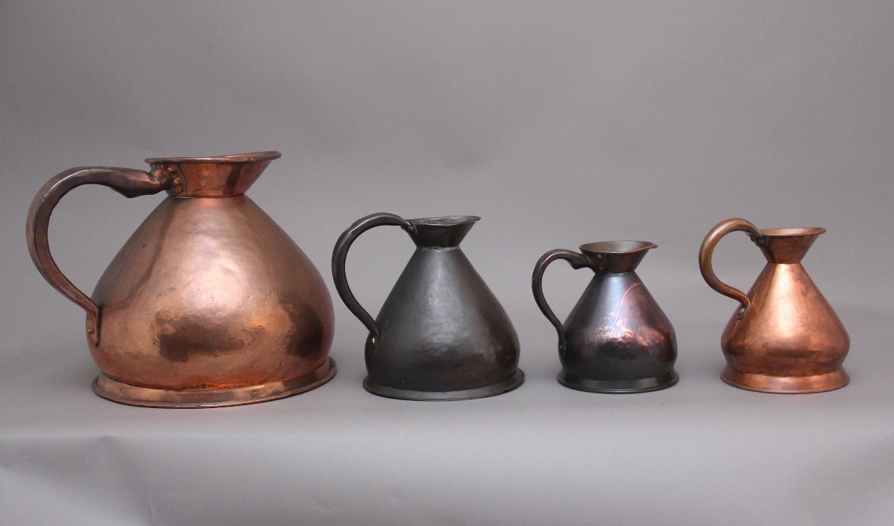 Set of Four Decorative 19th Century Copper Measuring Jugs (1 of 9)
