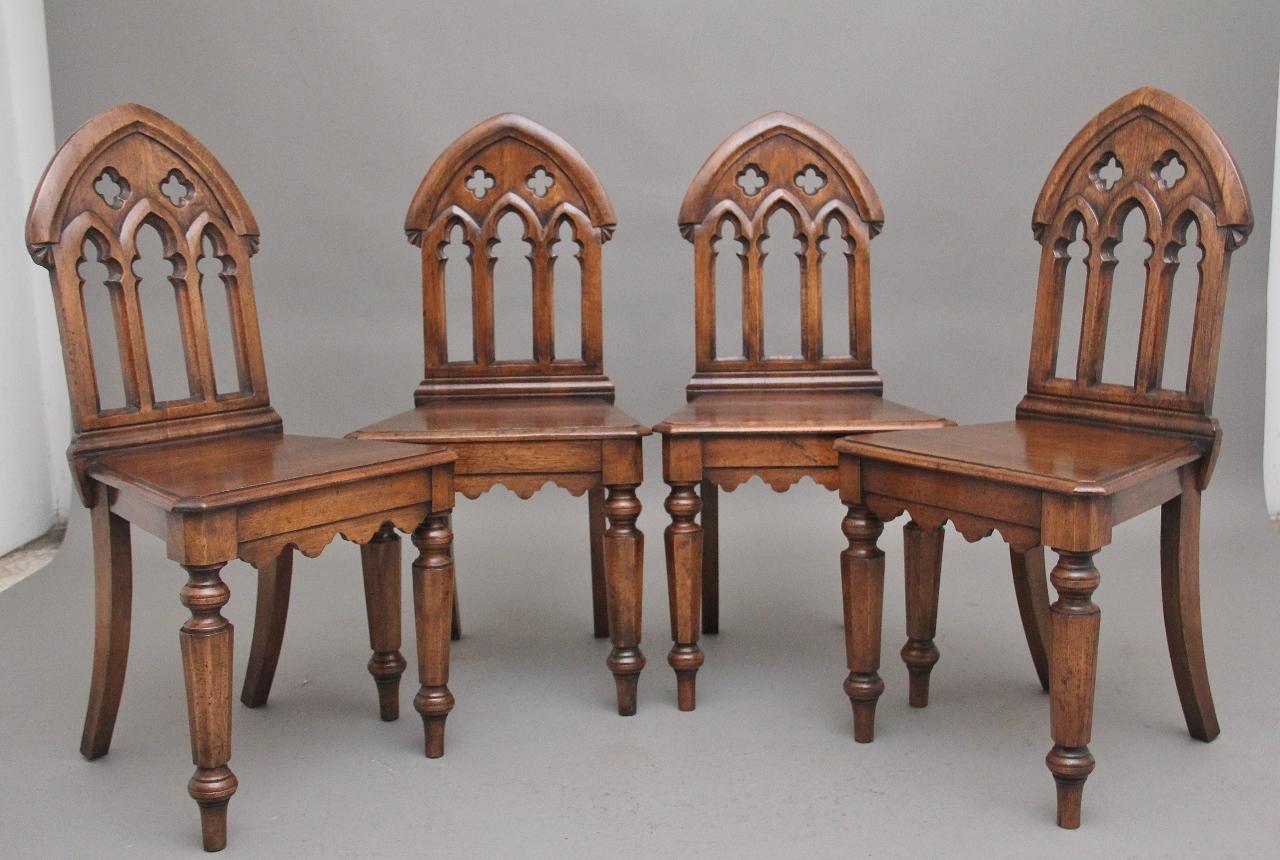 Set of Four Early 20th Century Gothic Style Hall Chairs