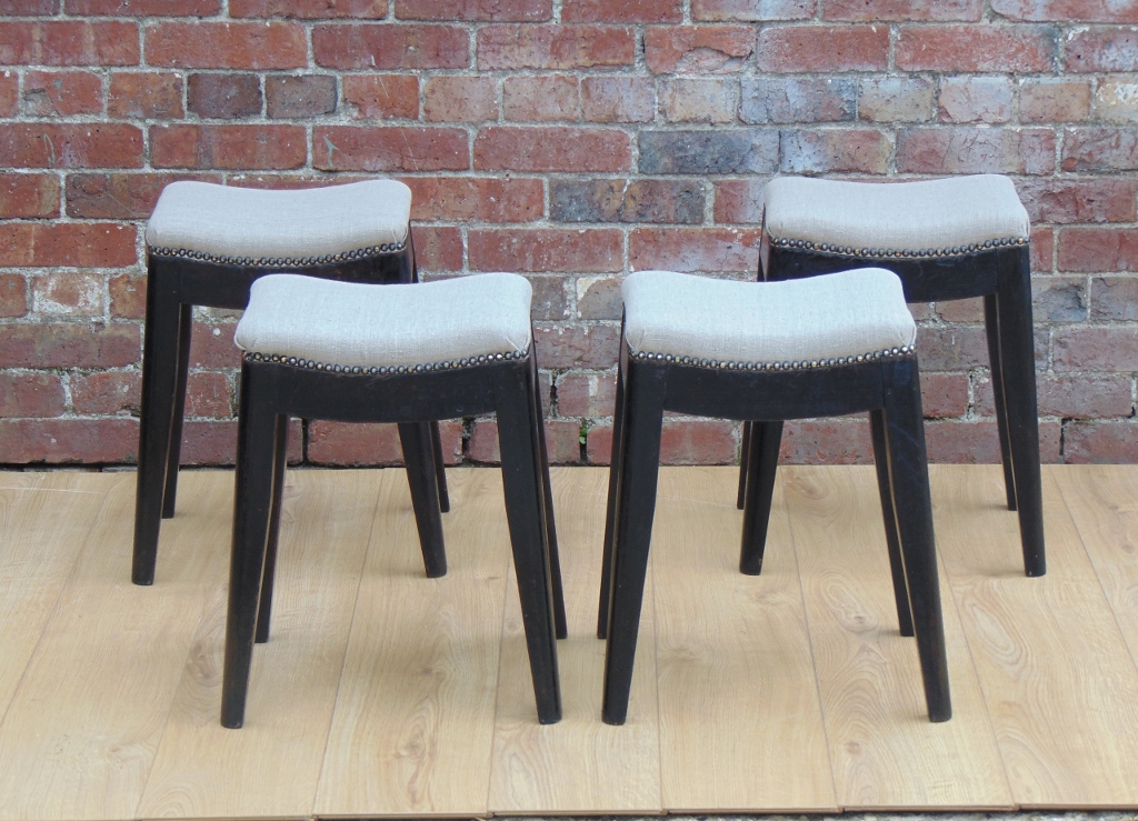 Set of Four Ebonised Newly Upholstered Bar Stools