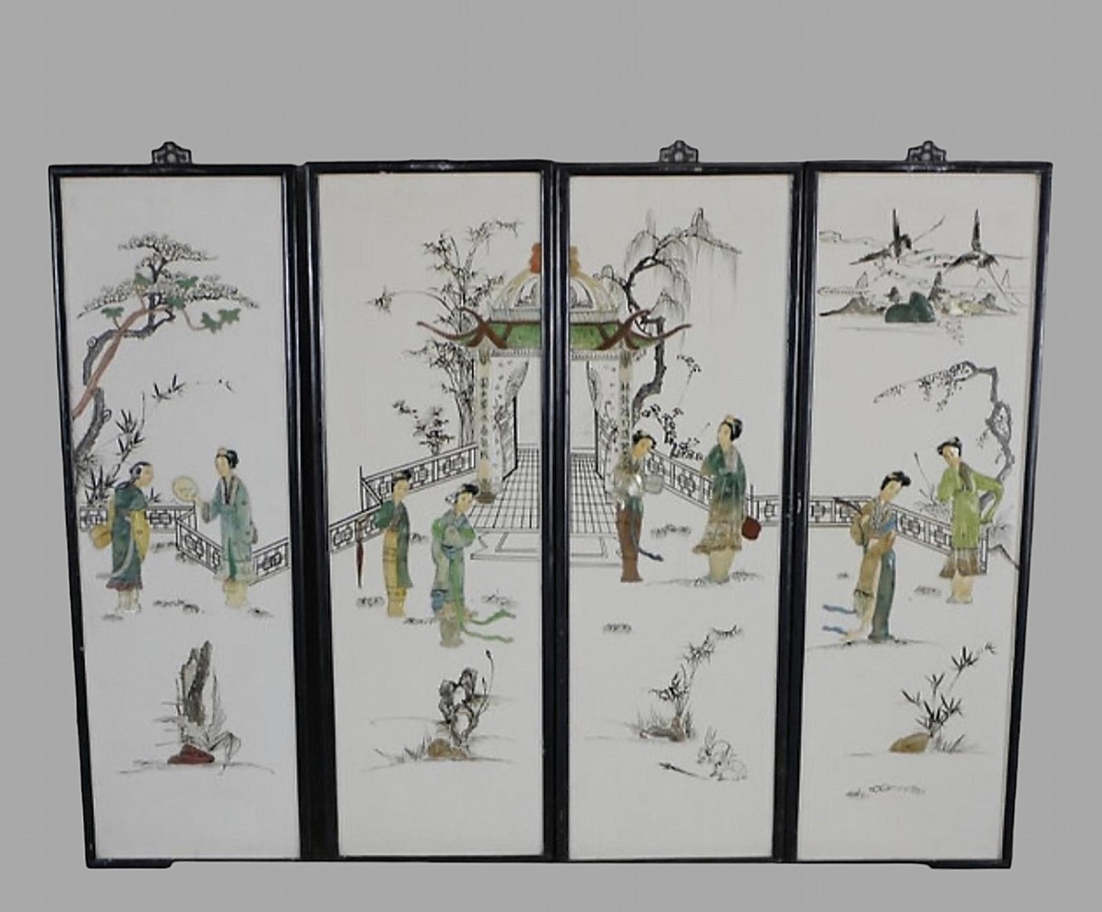 Set of Four Framed Asian Chinoiserie Decorative Panels
