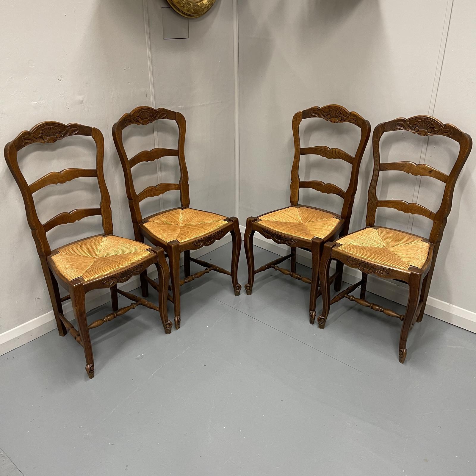 Set of Four French Oak & Rush Seat Chairs (1 of 6)