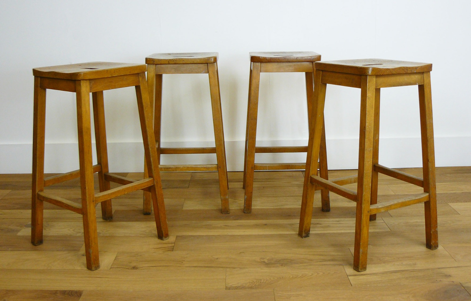 Set of Four Genuine Vintage Wooden Lab Stools c.1950