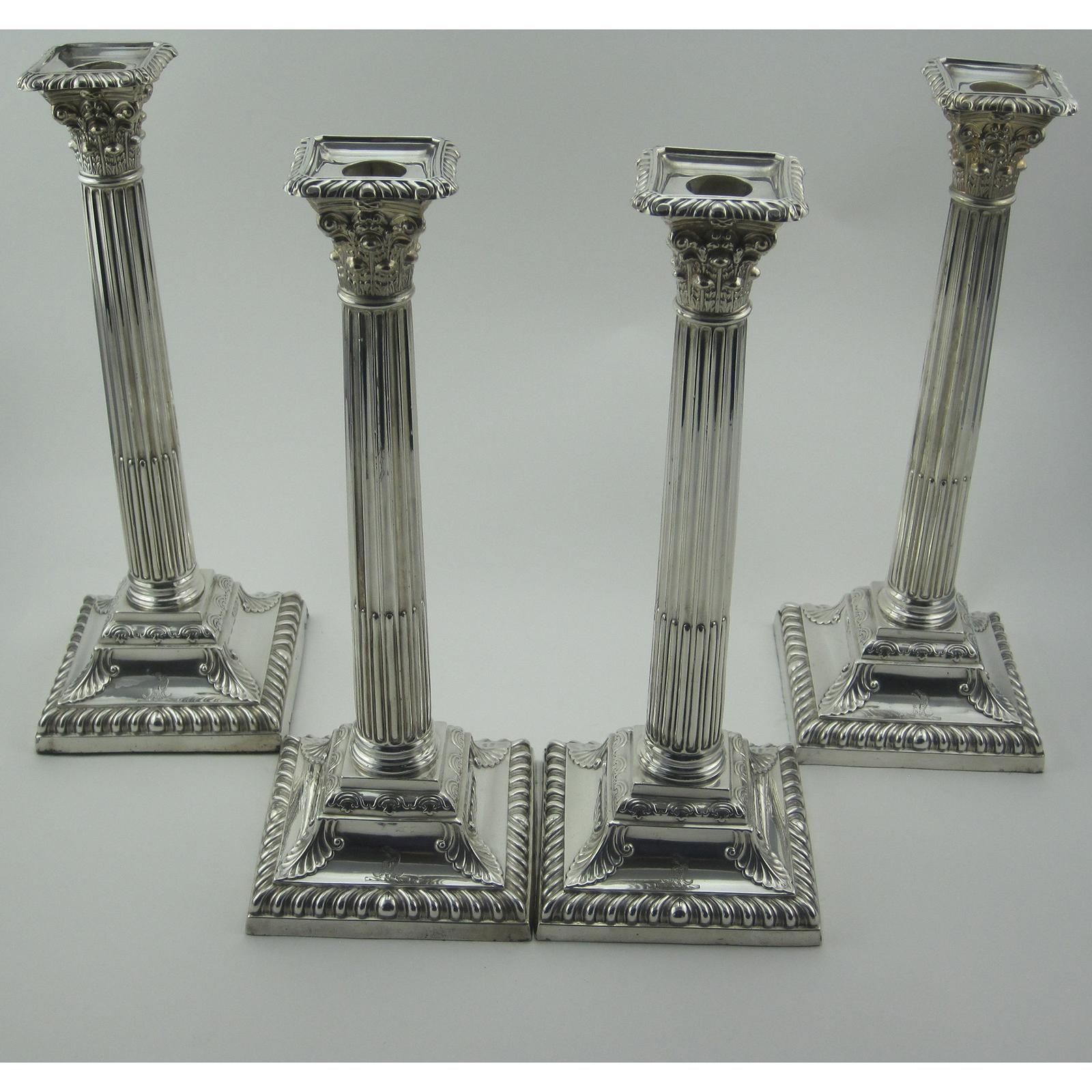 Set of Four George II Style Victorian Sterling Silver Candlesticks