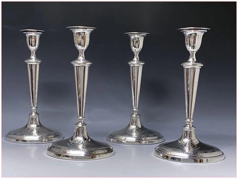 Set of Four George III Antique Silver Candlesticks Made in 1789