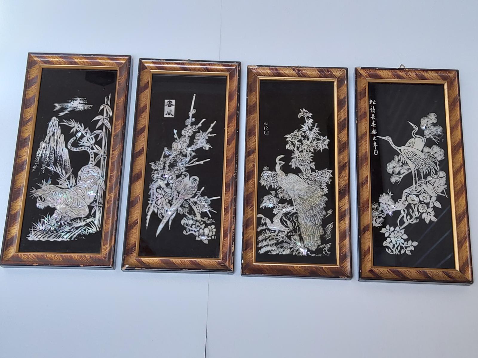 Set of Four Japanese Mother of Pearl on Glass Pictures (1 of 7)