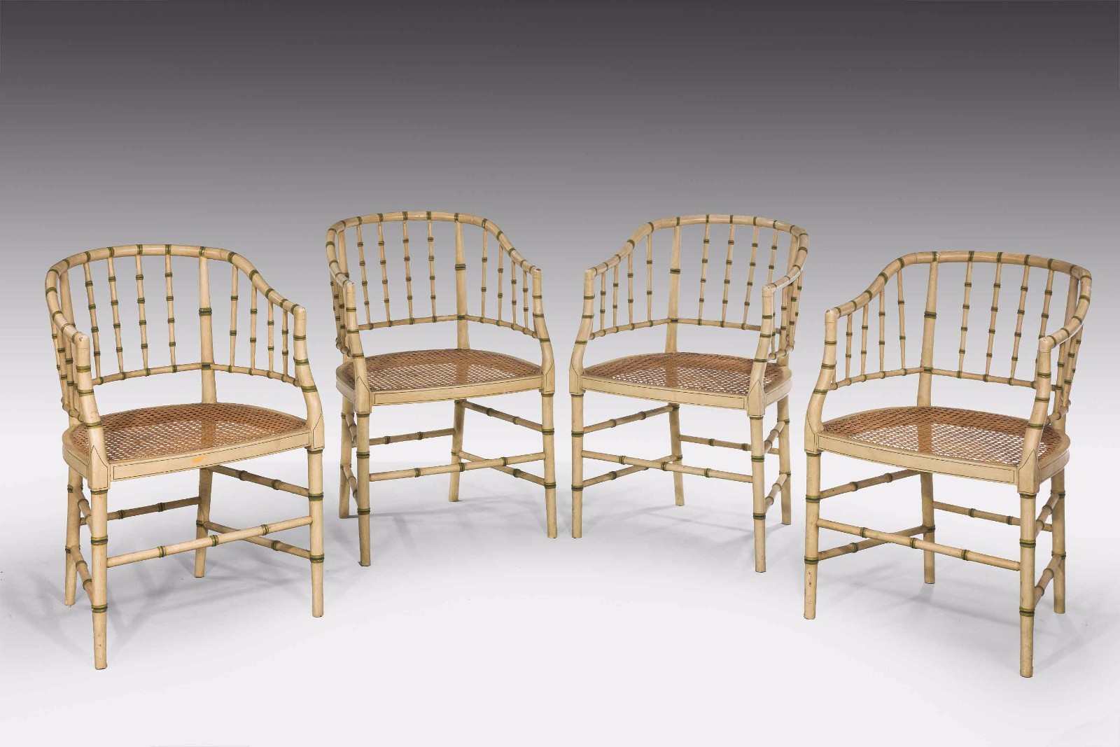 Set of Four Late 19th Century Faux Bamboo Elbow Chairs c.1900
