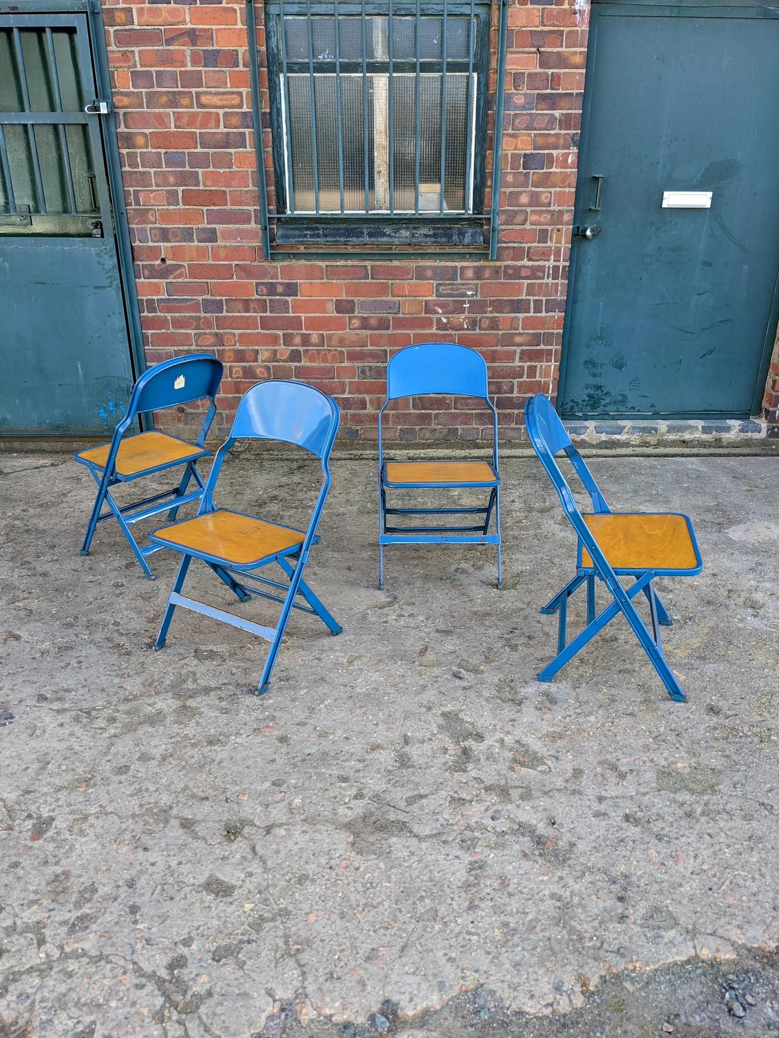 Set of Four Mid Century Folding Metal Chairs / Dining Chairs