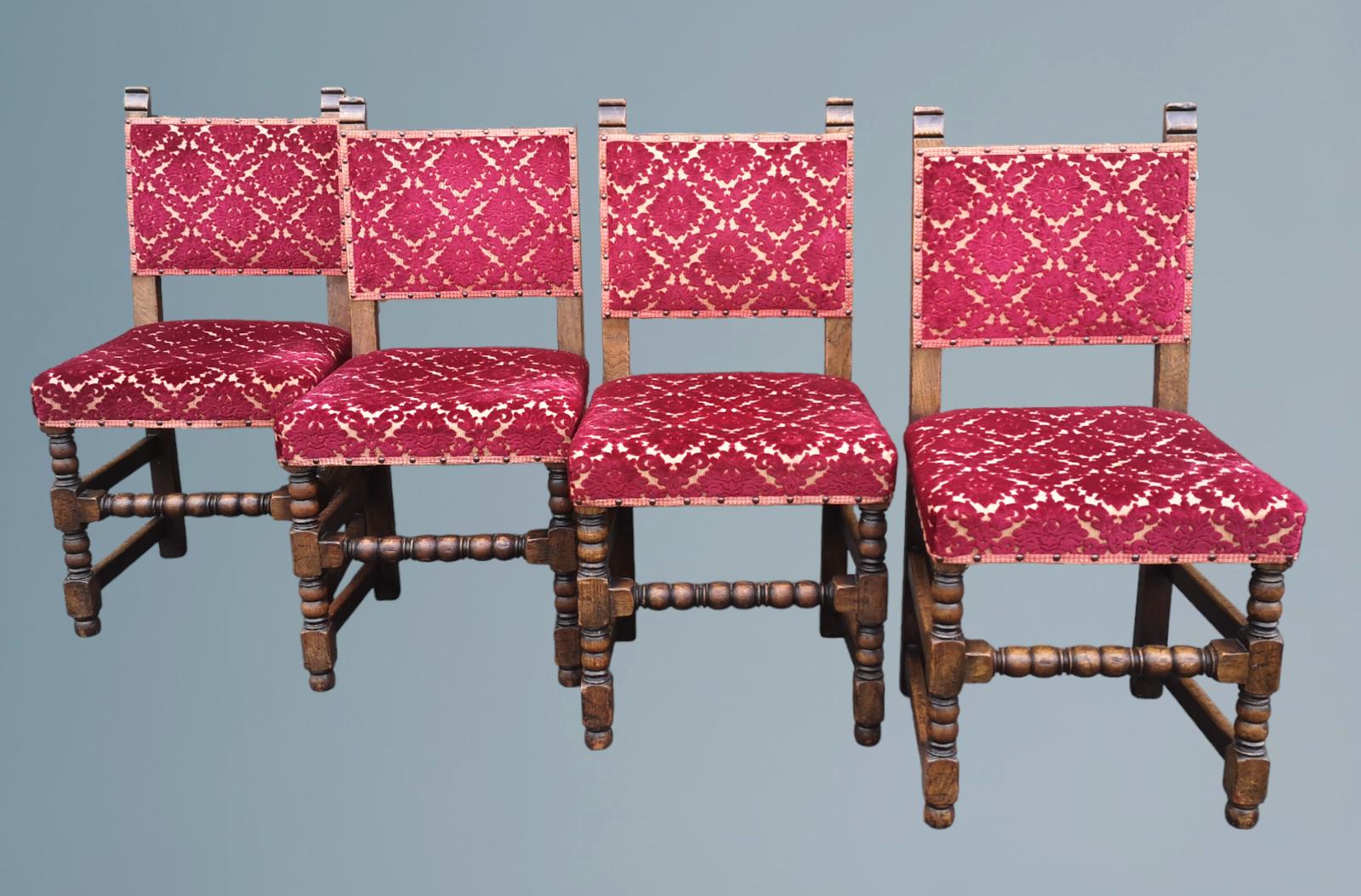 Set of Four Oak Dining Chairs in Cromwellian Style