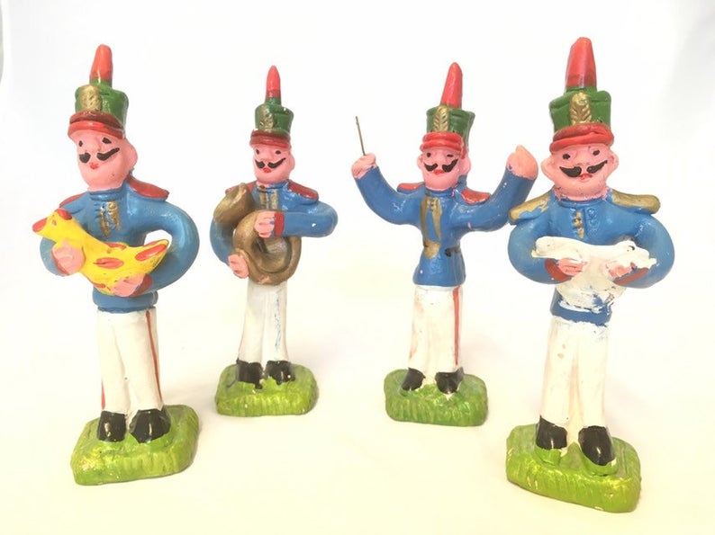 Set of Four Pottery Portuguese Folk Art Whistles in the form of Musicians, Music Gift, Working Pottery Whistles