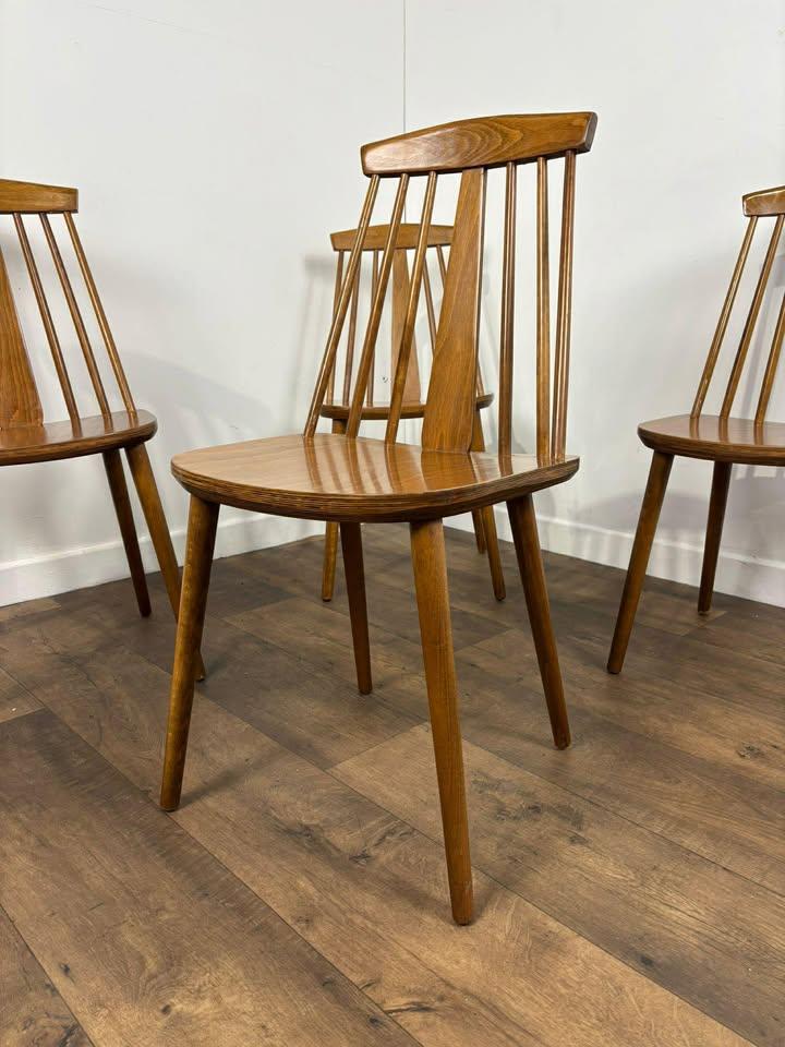 Set of Four Rodanski Mid Century Danish Style Stick-back Dining Chairs