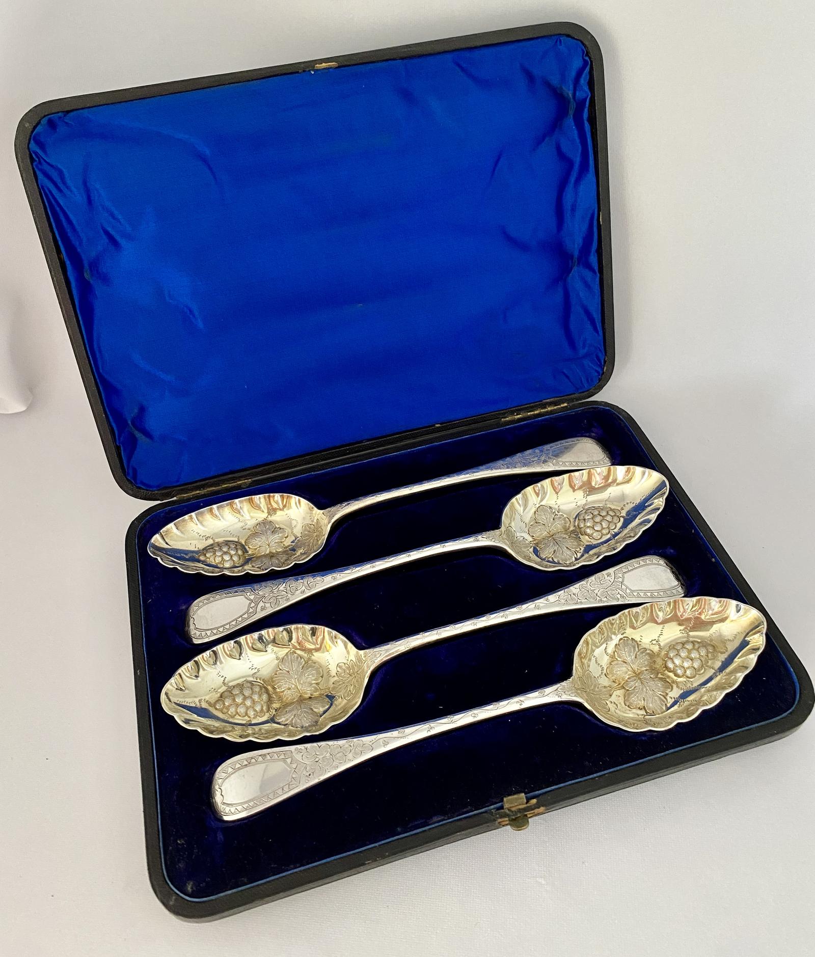 Set of Four Silver Plated Victorian Berry Fruit Spoons c.1880