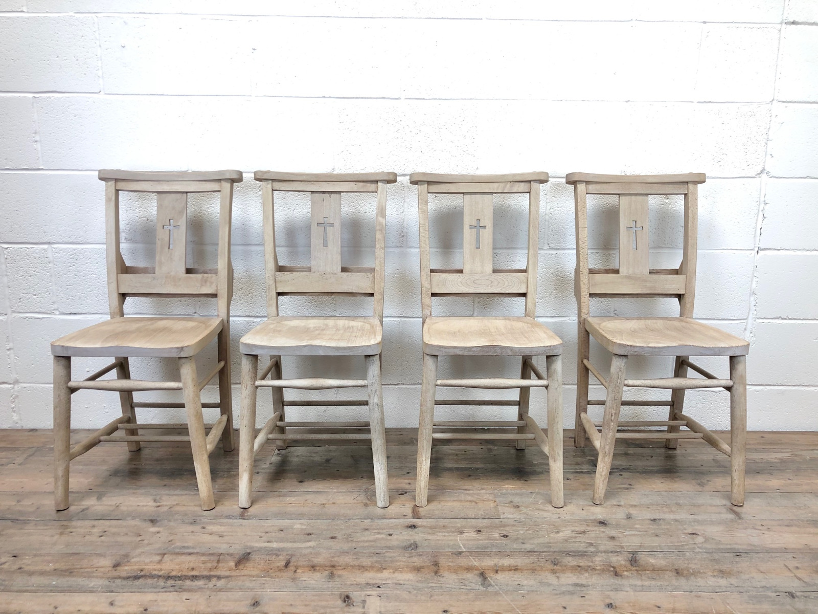 Set of Four Solid Beech Chapel Chairs with Cross Backs (1 of 7)