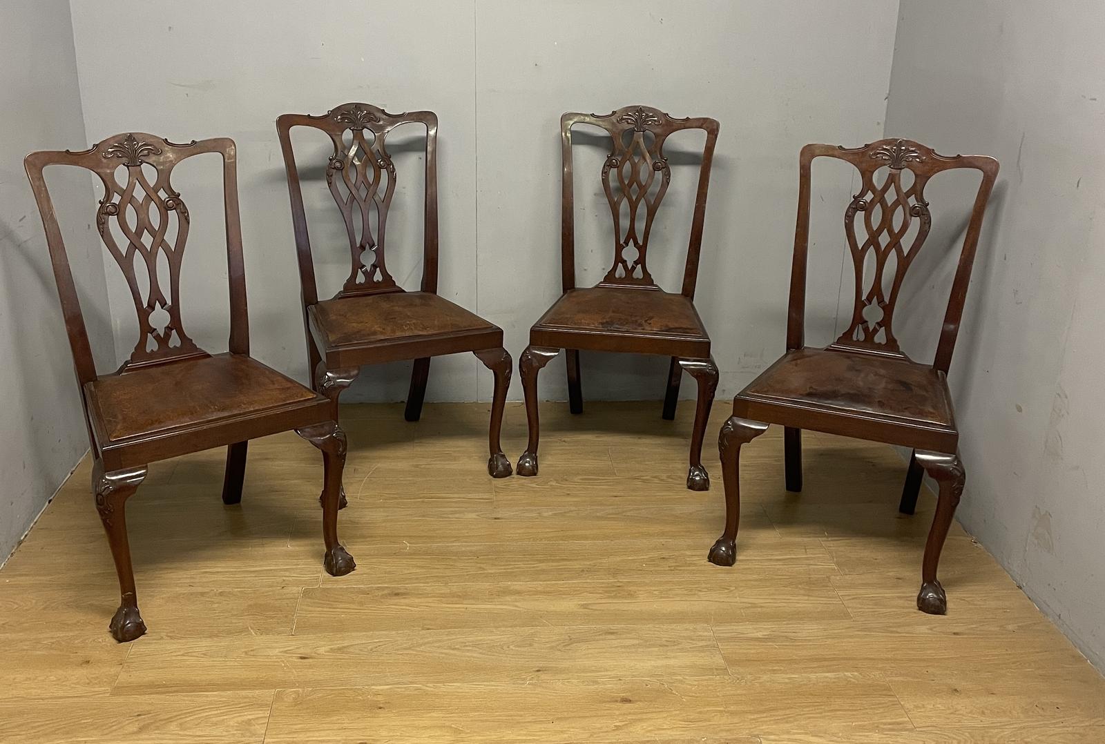 Set of Four Solid Mahogany Queen Anne Style Dining Chairs Circa 1890