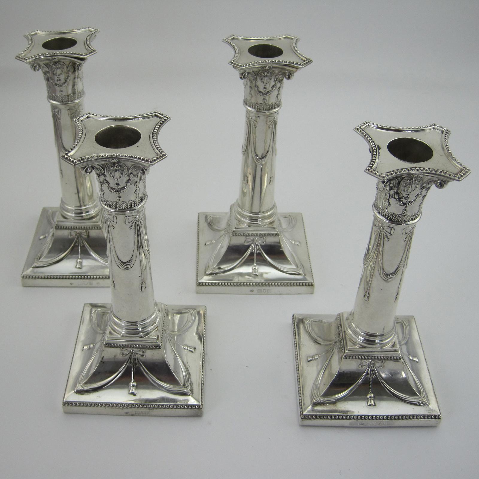 Set of Four Thomas Bradbury Sterling Silver Candlesticks
