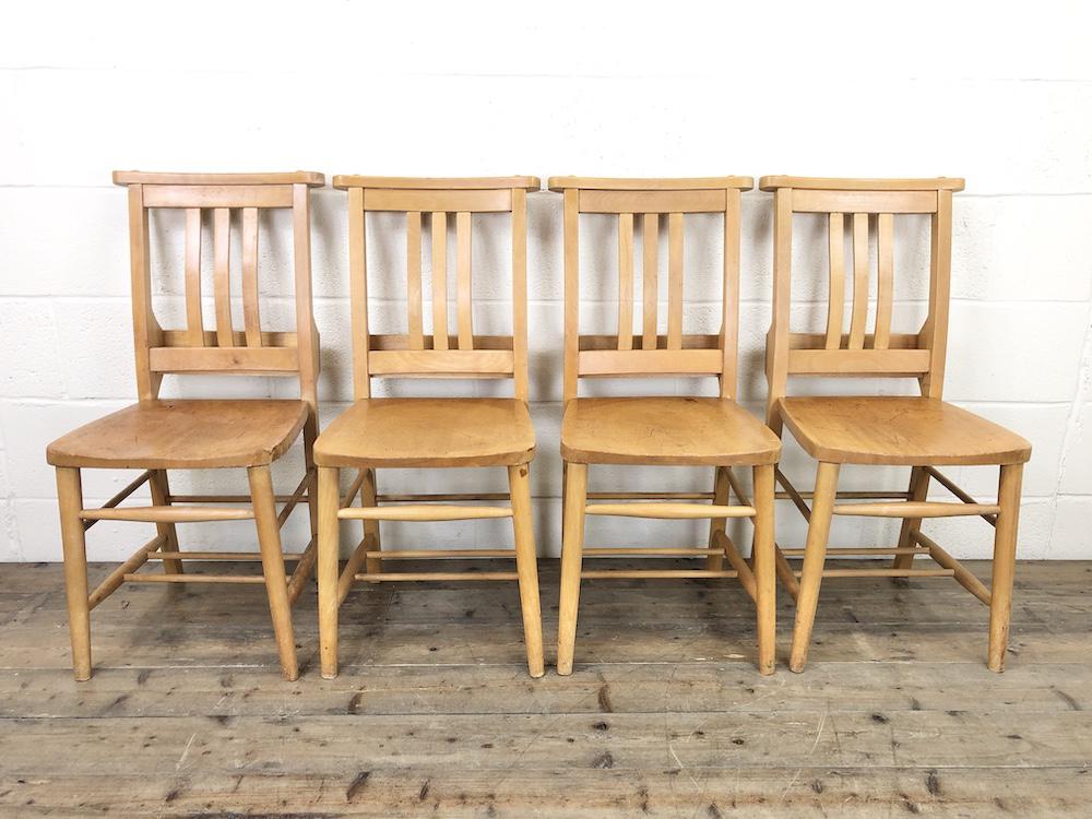 Set of Four Vintage Beech Chapel Chairs (1 of 16)