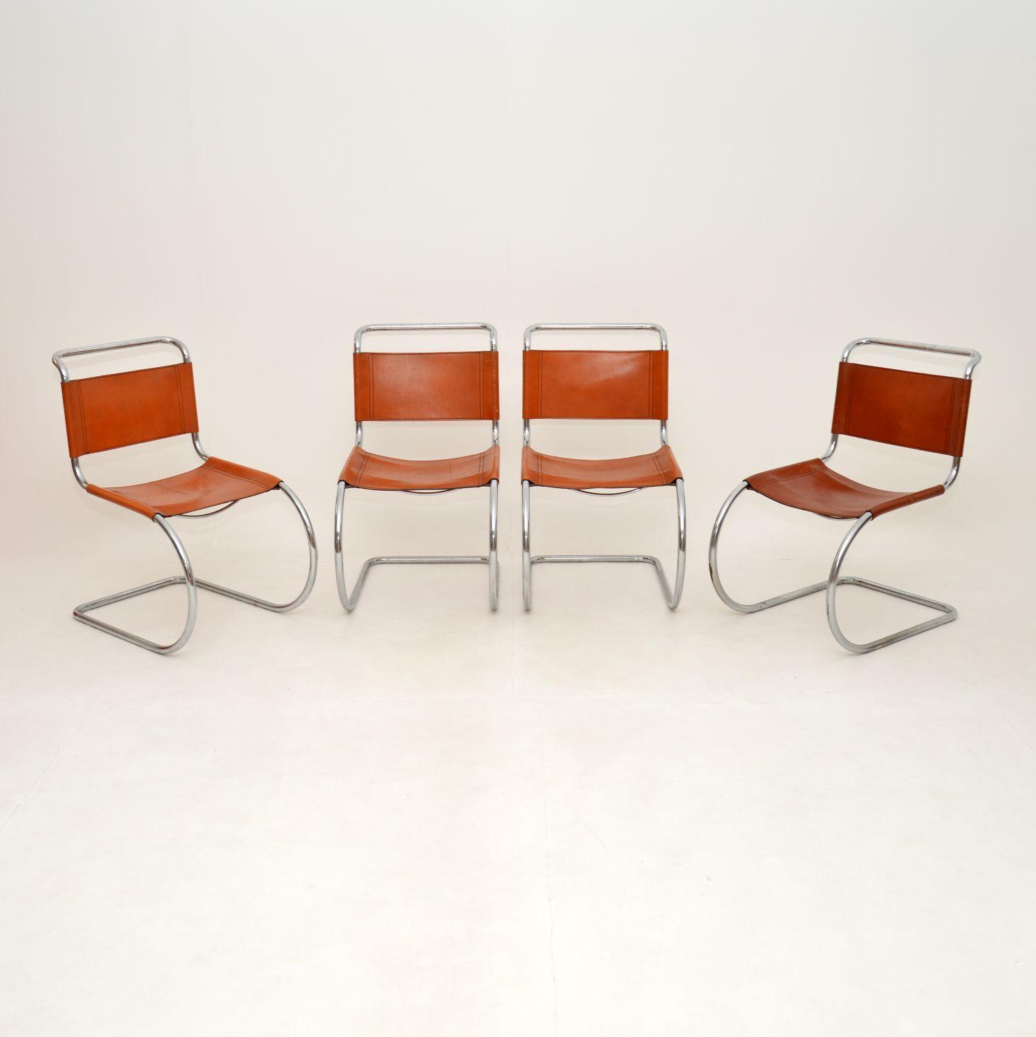 Set of Four Vintage Leather & Steel Mr10 Chairs by Mies Van Der Rohe