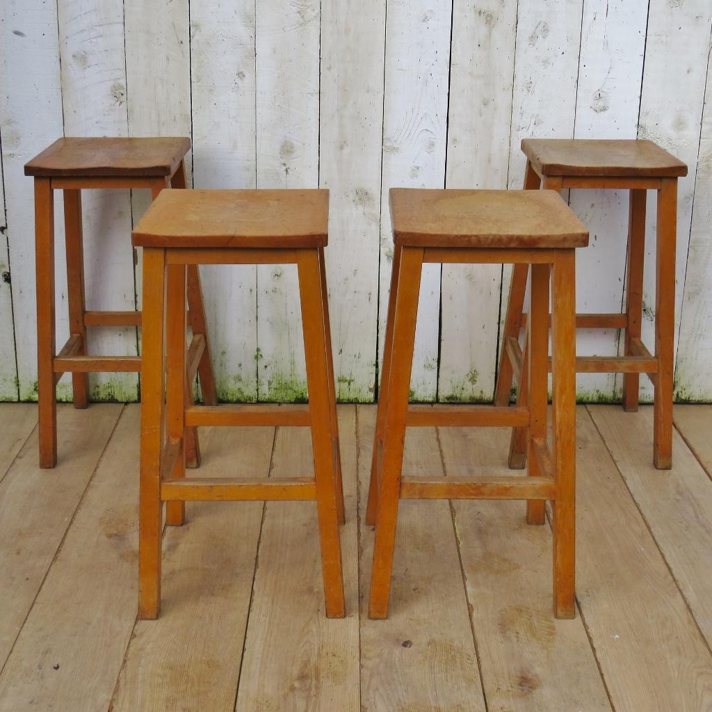 Set of Four Vintage Tall School Lab Bar Stools