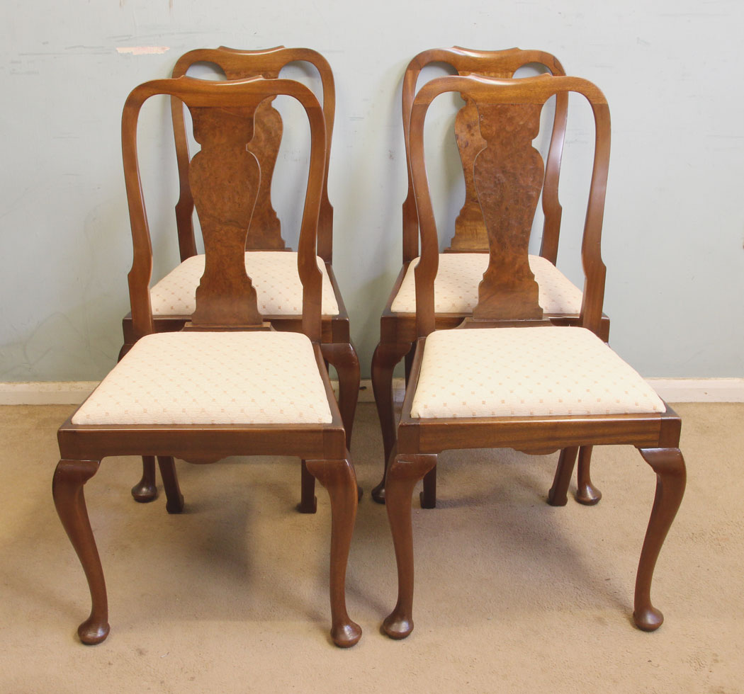 Set of Four Walnut Queen Anne Style Dining Chairs